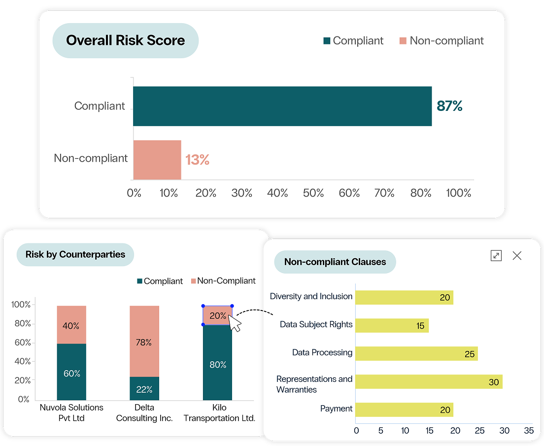 Extracts 1,200+ fields across metadata, clauses, obligations, and SLAs with self-learning precision.