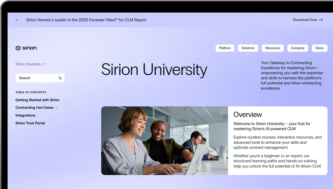 Sirion University is your dedicated partner learning hub—built to help you master Sirion, accelerate implementation, and drive client success. Access expert-led courses, best practices, and partner-exclusive resources—all in one place.