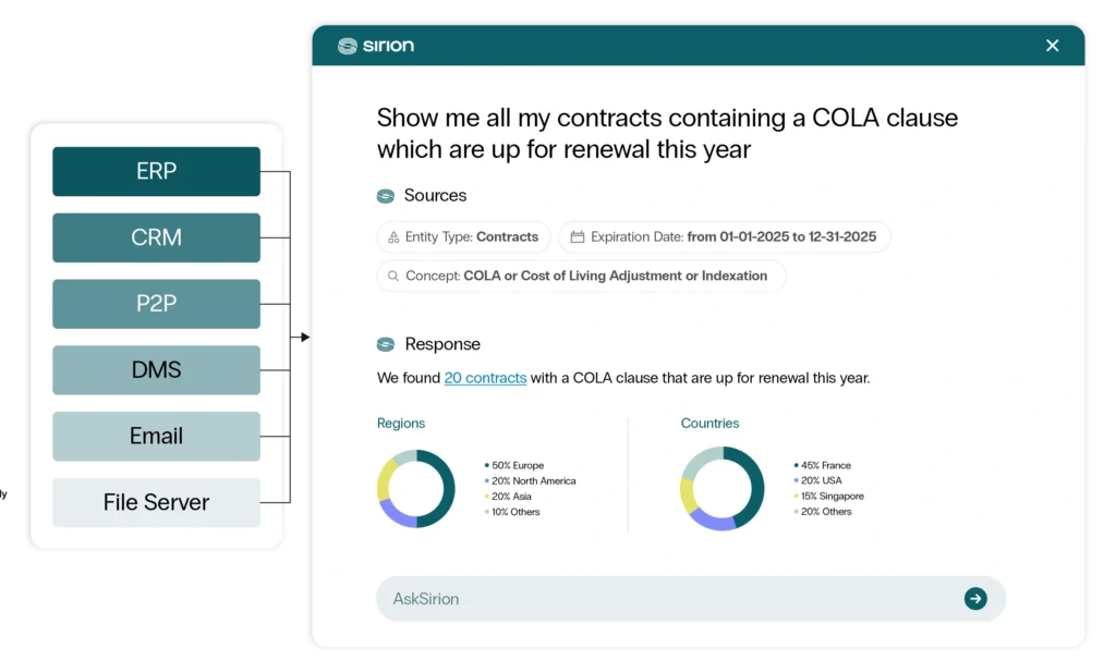 Get answers you can trust, instantly. From quick questions to deep analysis – search contracts, spot risks, and automate next steps.
