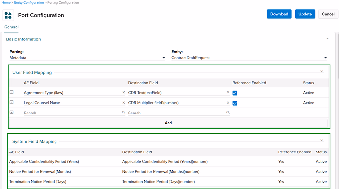 Admins now have more precise control over how Auto Extraction (AE) fields create custom fields in Contracts and Contract Draft Requests. Field creation is checkbox-driven with audit logs for traceability, and Porting Configuration now clearly separates system and user-defined mappings.